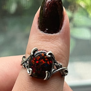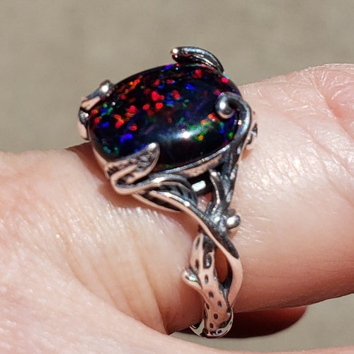 Black Cherry Opal Ring See Video For Red Fire 10x12mm Lab Etsy